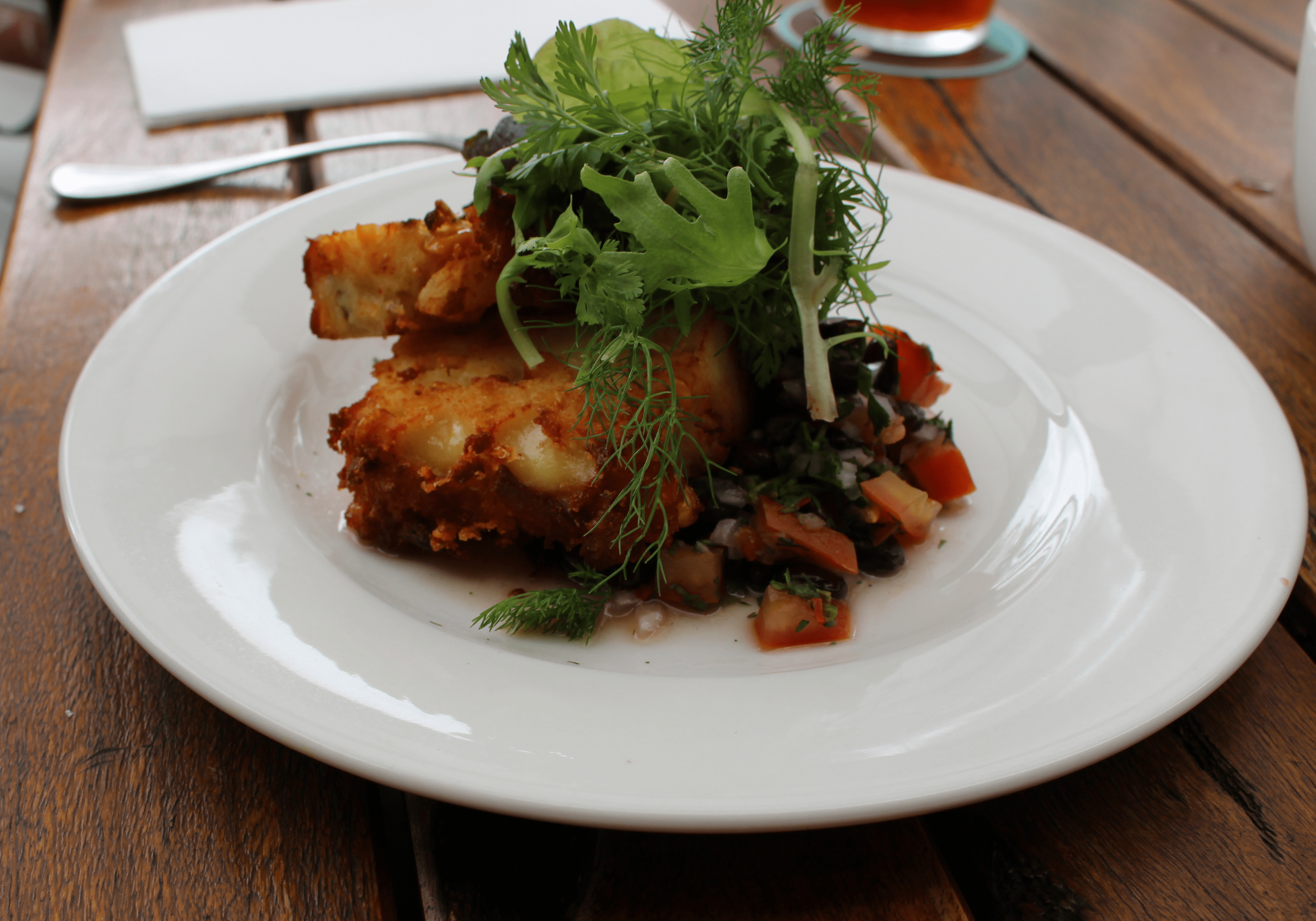 Friend sweet corn bread, black bean salsa and guacamole ($20)
