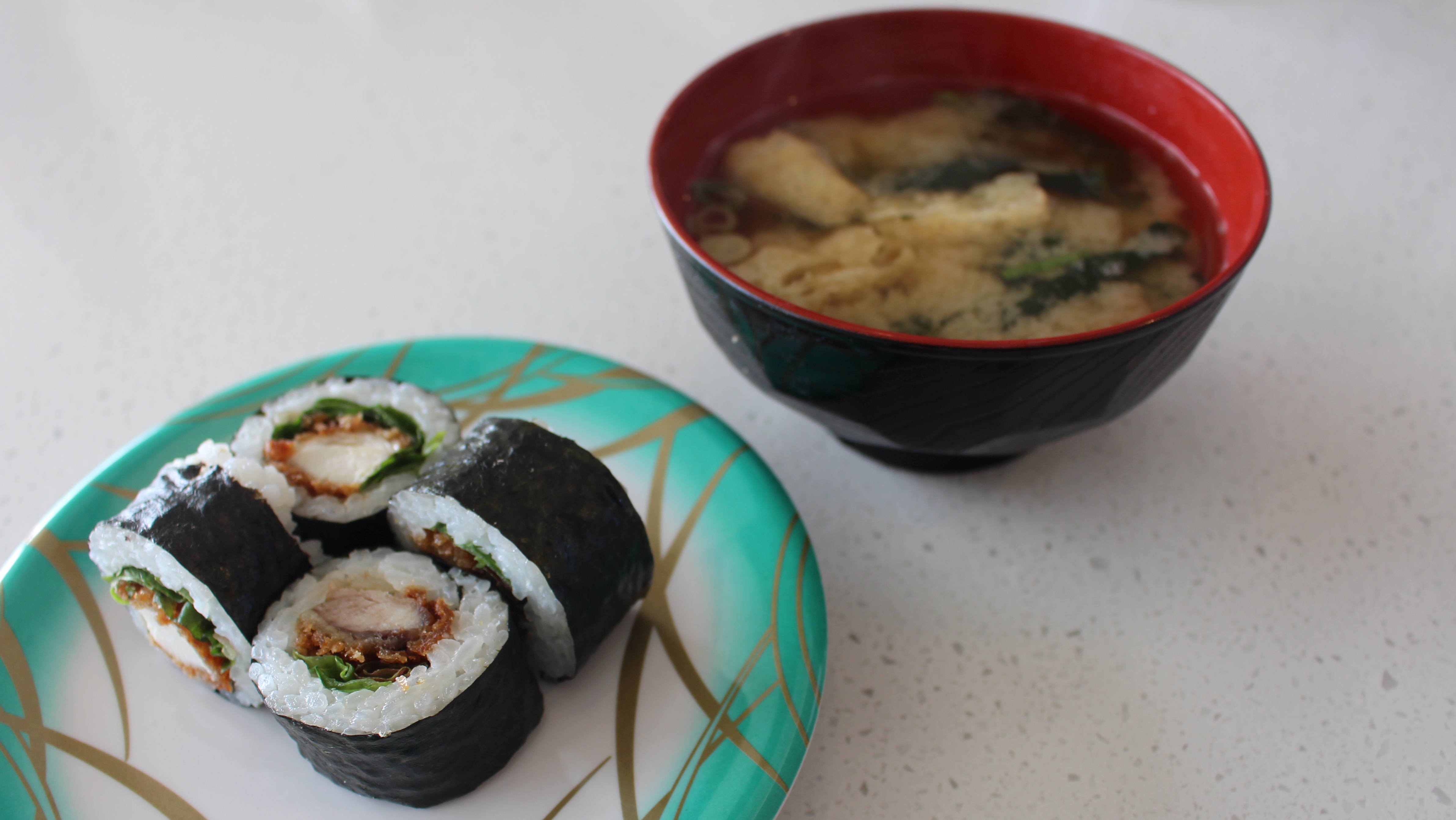 The sushi train is an impressive 62 meters long – thought to be the largest in the Southern Hemisphere. We sit in a cosy booth. The sushi train runs past the end of the table. Neither of us have experienced a proper sushi train before and we are a little mesmerised. We sip some warm Miso Soup ($3), while we watch sushi and other Japanese treats pass by our table.